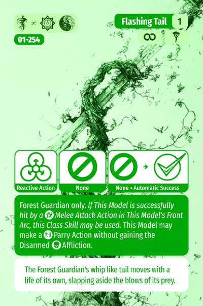 The War Bear can pin an opponent in place which is really useful to hold up a scary monster, but the Forest Guardian gets a free Parry Action each Activation via its Flashing Tail skill. This is really useful as it is a Reactive Action and allows the Forest Guardian to act as a Skirmishing unit that can engage a monster or opposing Hero from outside of their range, force them to come to the summon and then they can reduce the damage of an incoming attack. Alternatively, you have this Summon run around a flank to attack enemy support models where due to its high damage attack and solid Accuracy of 3, it has a good chance of taking them out or at least taking up all their attention.